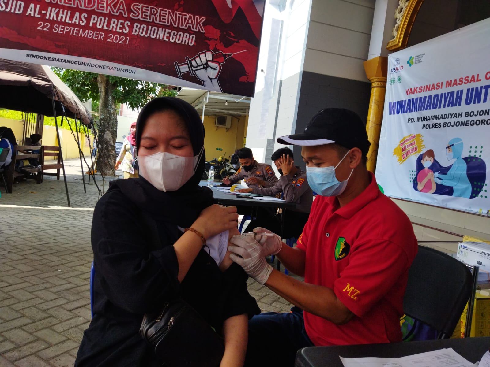 “Hari ini kita gelar vaksinasi di halaman Masjid Al Ikhlas Polres Bojonegoro dan Polsek jajaran juga menggelar gerai vaksinasi,” ucapnya.