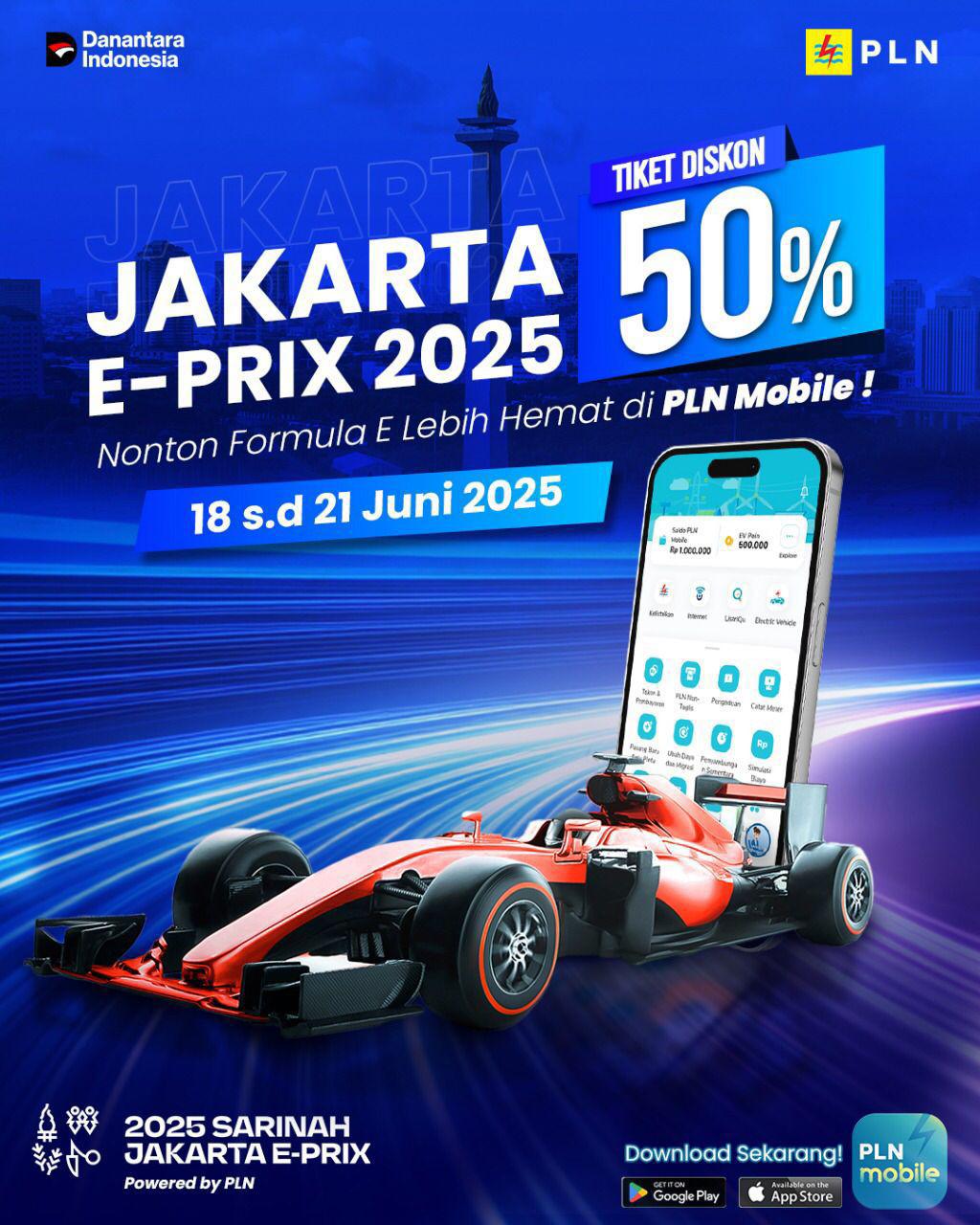 Jakarta, Memokita – 20 Juni 2025 – Dalam rangka menyemarakkan ajang balap mobil listrik internasional Jakarta E-Prix 2025, PT PLN (Persero) menghadirkan promo spesial berupa diskon 50% untuk pembelian tiket Formula E melalui aplikasi PLN Mobile. Promo ini berlaku sampai dengan tanggal 21 Juni 2025.