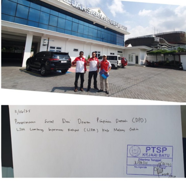 Laporan tersebut disampaikan langsung oleh Bupati LSM LIRA Kabupaten Malang, Sri Agus Mahendra, yang didampingi Dewan Pakar LIRA Malang Sugeng Hermawan, Wasekda Suherianto SE, dan Kepala Dinas Sosial LIRA Malang Muhammad Raffi, Rabu (11/6/2025) di kantor Kejari Kota Batu, Jalan Sultan Agung Nomor 07, Sisir, Kecamatan Batu.
