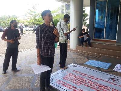Tak selang berapa lama berorasi para pendemo diterima untuk audiensi dengan dua Perwakilan BPK RI, diantaranya Kabag Humas Hendra, dan Andrie Cahyo Purnomo Kabag Hukum.