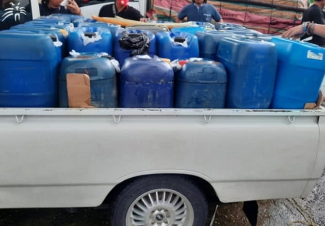 “Petugas mencurigai mobil tersebut yang membawa muatan ditutup terpal. Saat diperiksa ditemukan 44 jerigen berisi 1.452 liter BBM jenis premium dan 6 jerigen berisi 198 liter solar, totalnya 1.650 liter,” ujarnya, Kamis sore, di Mapolda.