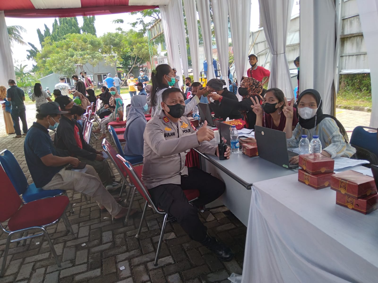 Sementara itu salah seorang buruh yang mengikuti vaksinasi merdeka, iwan (45) mengaku senang dengan adanya vaksinasi di wilayah tersebut.