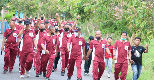 Kegiatan olah raga jalan santai senam bersama serta tarik tambang diikuti oleh seluruh keluarga Besar Polres Lahat.(Mar/Nov)