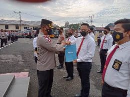 Kapolres lahat AKBP Eko Sumaryanto SIK, yang memimpin langsung langsung apel pemberian penghargaan kepada sejumlah personel Polres dan anggota Polsek Kikim Selatan.