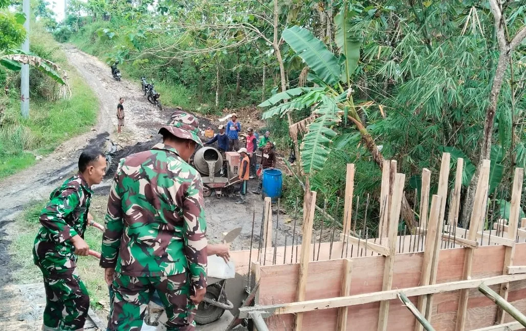 Di sepuluh titik pembangunan jembatan tersebut, personel TNI Kodim 0813 Bojonegoro bersama masyarakat bergotong-royong melalui kegiatan karya bakti membangun Jembatan Perintis Garuda mulai dari mengangkut bahan material bangunan, merakit rangka besi cor hingga proses pengecoran pondasi jembatan.