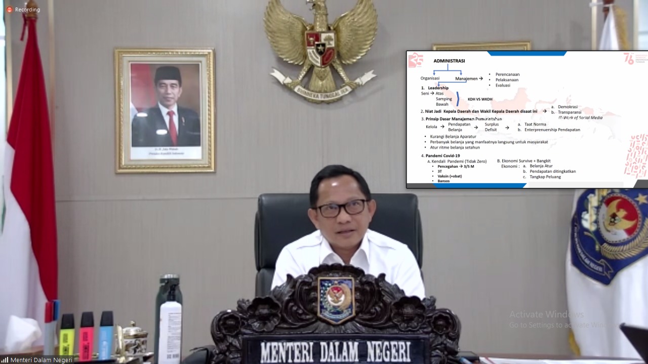 Demikian disampaikan Mendagri saat membuka kegiatan Pembekalan Kepemimpinan Pemerintahan Dalam Negeri bagi Bupati/Wakil Bupati, Wali Kota/Wakil Wali Kota Tahun 2021, Senin (13/9/2021). Mendagri juga menekankan kepada kepala daerah dan wakil kepala daerah agar betul-betul dapat mencermati dan memahami isi UU Nomor 23 Tahun 2014 tentang Pemerintahan Daerah.