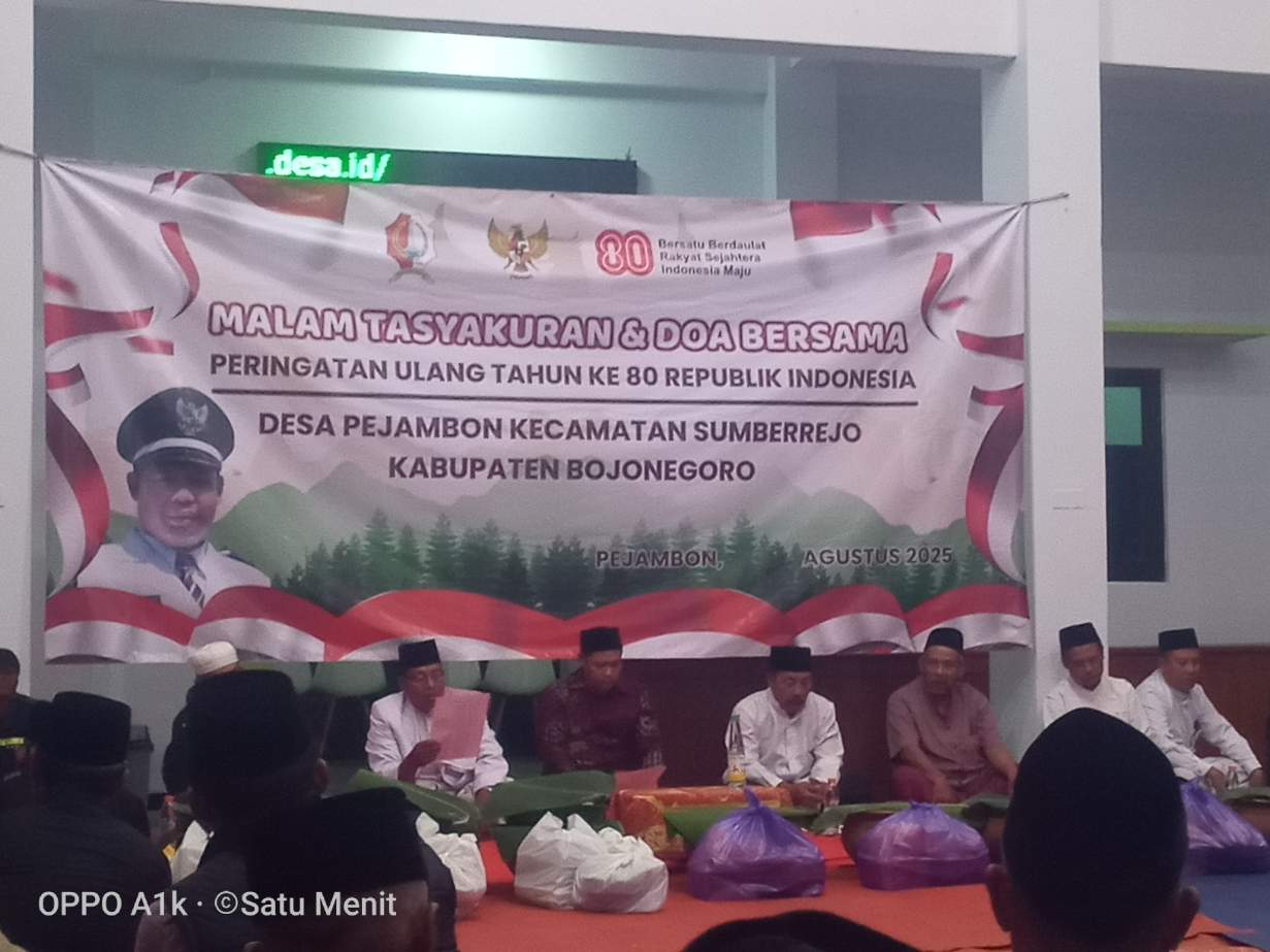 Salah satunya Desa Pejambon kecamatan sumberrejo kabupaten Bojonegoro melaksanakan Tasyakuran dan doa bersama pada malam 17 Agustus 2025. Dalam rangka memperingati Hari Kemerdekaan Republik Indonesia yang ke-80, pemerintah desa pejambon bersama warga menggelar acara Shalawatan dan Syukuran di aula balai desa Pejambon. Acara ini memiliki tujuan utama untuk mengekspresikan rasa syukur atas kemerdekaan negara Indonesia yang telah berlangsung selama 80 tahun.