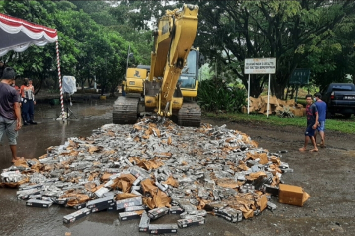 Adapun barang bukti yang dimusnahkan antara lain, hasil tembakau merek “NOUS” yang dilekati dengan pita cukai palsu (jumlah 135 karton/80 slop/200 batang – 2.160.000 batang).