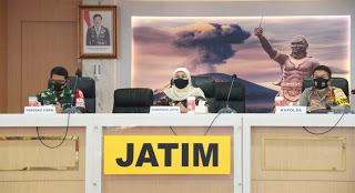 Surabaya ]MMCNews.Id ,-Forkopimda Jawa Timur, Gubernur Jatim, Pangdam V Brawijaya dan Kapolda Jawa Timur, melaksanakan Vidcon Rakor Lintas Sektoral Pimpinan Bapak Kapolri Terkait Persiapan Pengamanan Idul Fitri 1442 H. Dimasa Pandemi Covid-19 Tahun 2021, di Gedung Rupatama, Mapolda Jawa Timur.Rabu (21/04/2021)