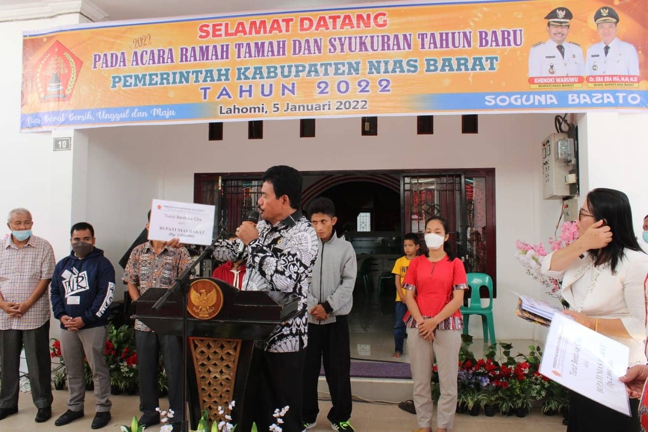 Nias Barat | MMCNEWS.ID, – Masih dalam momentum perayaan tahun baru 2022. Pemerintah Kabupaten Nias Barat melaksanakan ramah tamah dan syukuran tahun baru serta launching santunan duka cita di Pendopo Bupati Nias Barat, Onolimbu, Kecamatan Lahomi, Rabu (5/1/2022).