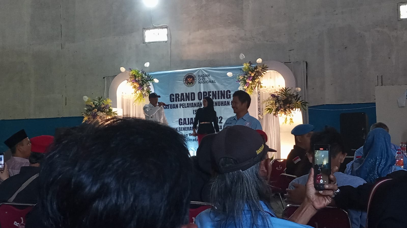 Rangkaian acara diawali dengan menyanyikan lagu kebangsaan Indonesia Raya dan diakhiri dengan pemotongan pita secara simbolis oleh Camat Purwodadi, menandai beroperasinya layanan gizi baru ini.